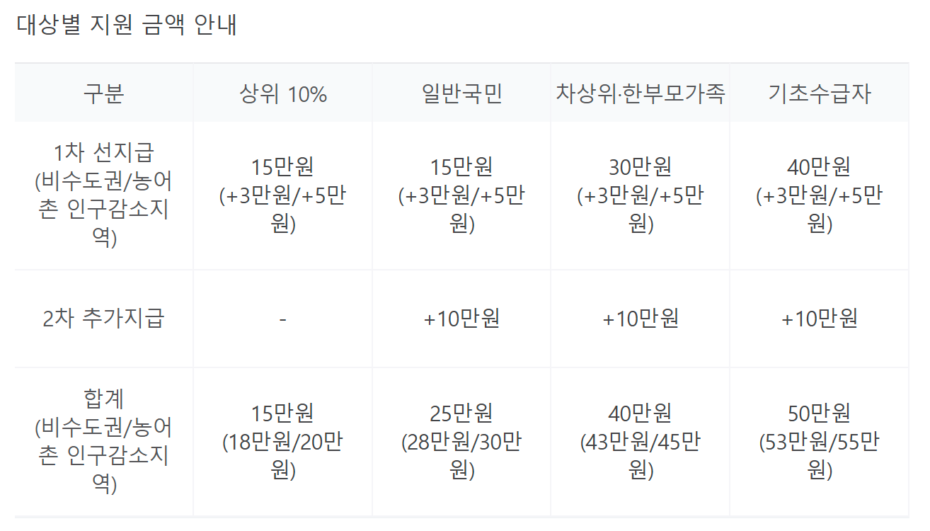 💡공지: 지급 금액과 대상은 지자체별로 다름 — 주민센터 공문 및 지자체 홈페이지 꼭 확인하세요