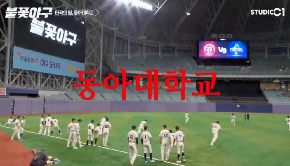 이번엔 동아대 유니폼을 입고 파이터즈와 맞대결을 펼쳤습니다!