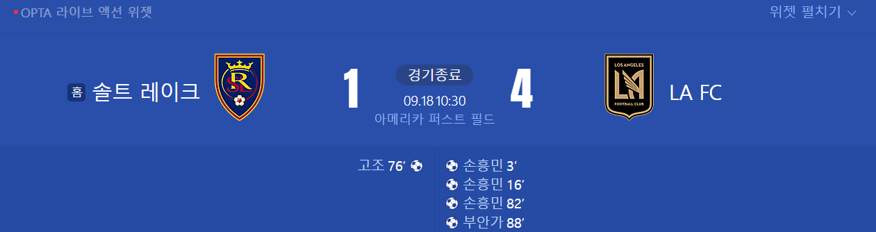 상대는 서부 콘퍼런스의 레알 솔트레이크. 손흥민은 전반 3분 만에 선제골을 터뜨리며 경기의 흐름을 장악했고, 결국 LAFC는 원정에서 4-1 승리를 거뒀습니다.