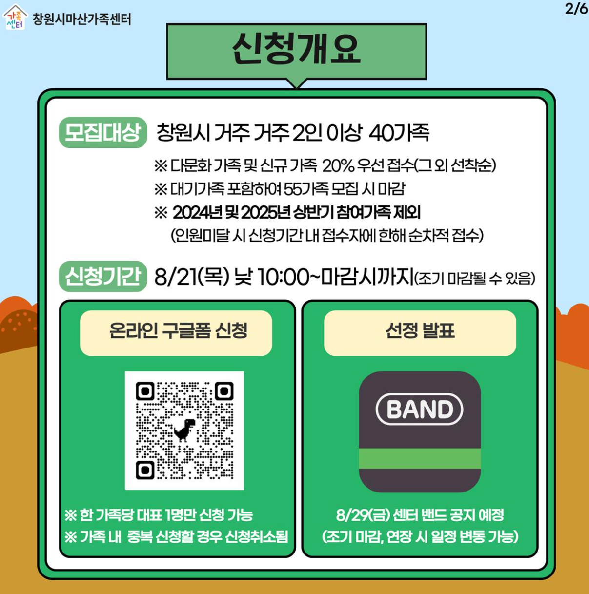 | 👨👩👧👦 모집 대상 | 창원시 내 2인 이상 가족 30가정 |
