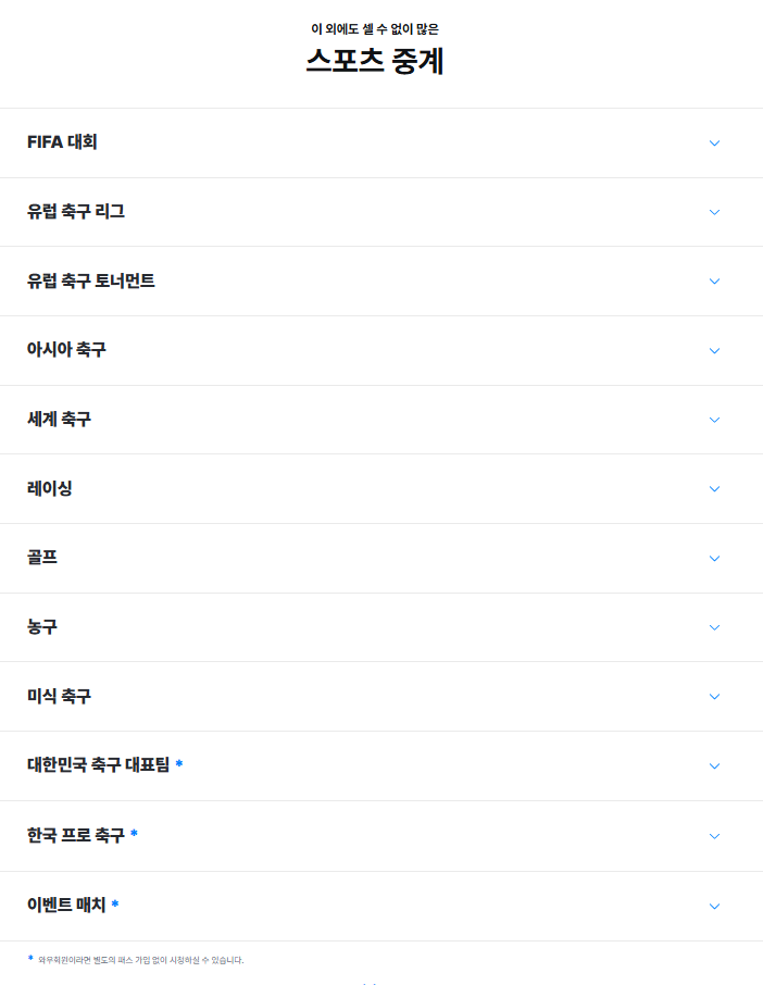 프리미어리그(EPL), 라리가, 분데스리가, NBA, F1 같이 중계권료가 비싼 스포츠 콘텐츠는 ‘스포츠패스’ 전용 요금제로 운영됩니다.