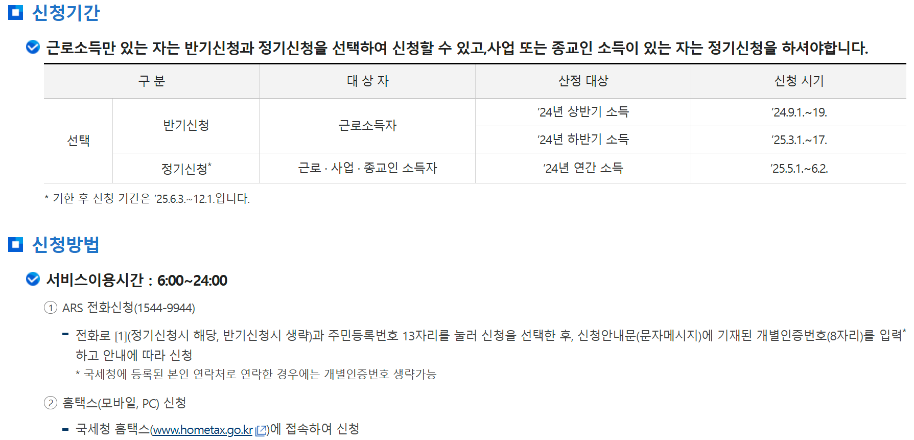 2. 근로장려금 정기 신청 (2024년 귀속분)