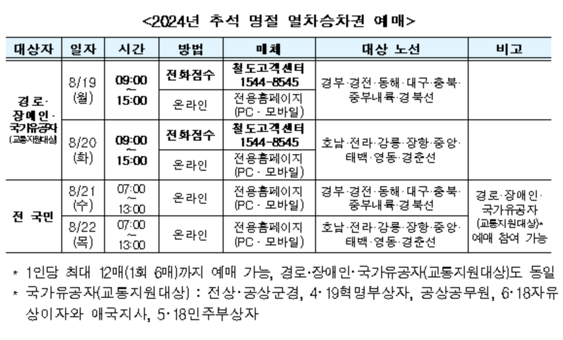 특히 이번엔 추석이 10월이라서, 작년보다 예매 시기가 조금 늦춰질 수 있다는 점도 참고해 주세요.