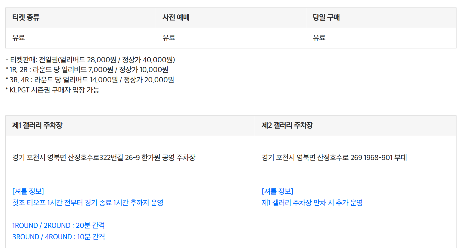- 티켓 안내: 현장 또는 사전 예매 가능 (KLPGA 홈페이지 참고)