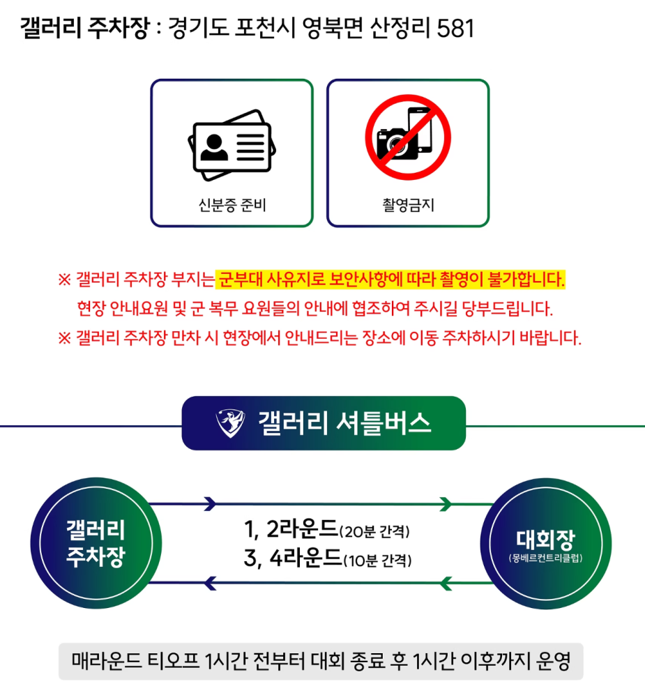 - 주차장 위치: 대회 전용 갤러리 주차장 이용